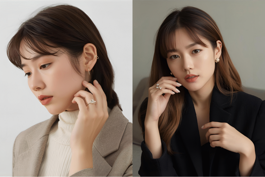 ・ピアスやイヤーカフは顔周りを華やかにする効果大